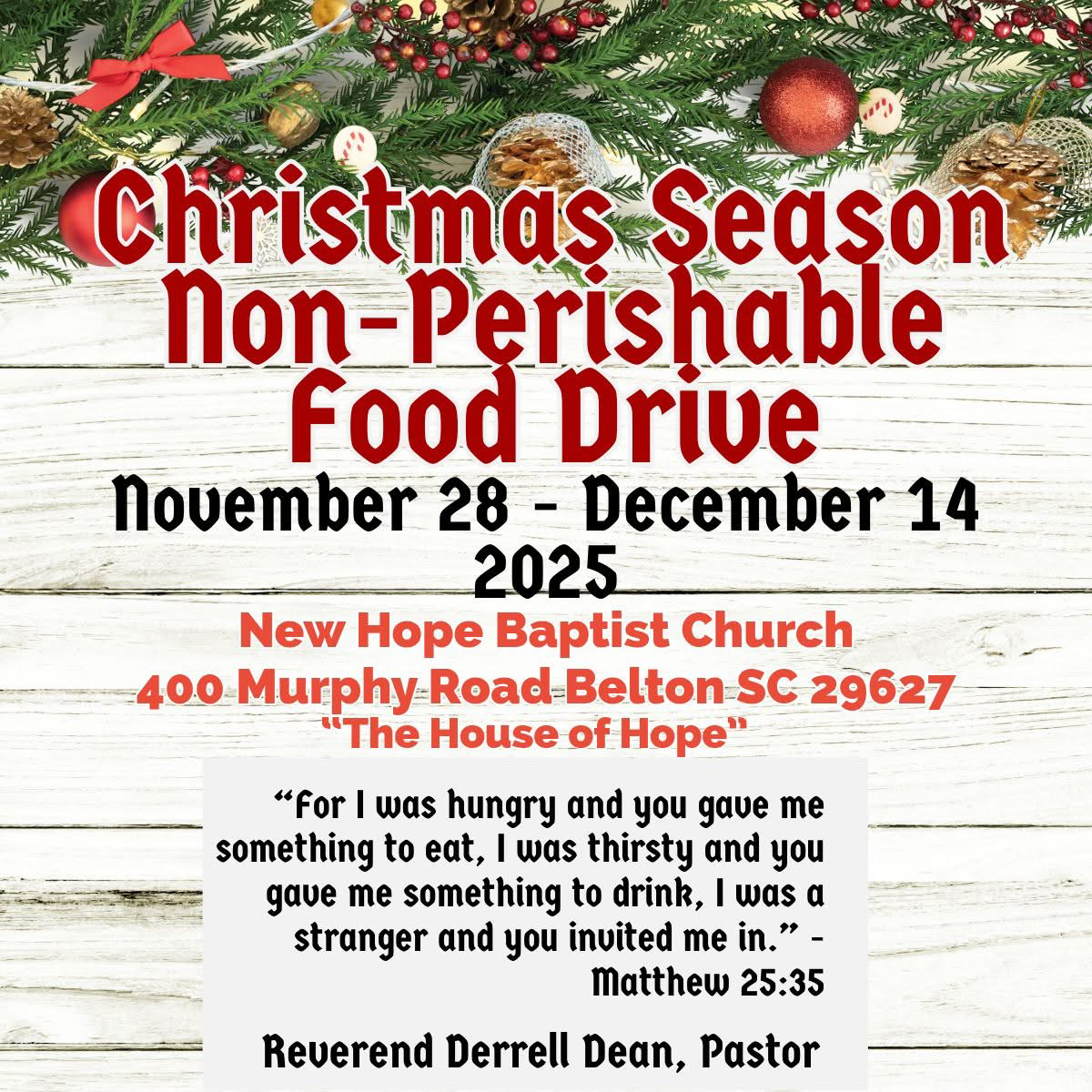 Thank you for giving generously towards this year's Christmas Season Non-perishable Food Drive. The Trustees and Pastor Dean delivered the items to Belton Interfaith Ministries (BIMA) this week, and they greatly appreciated them!